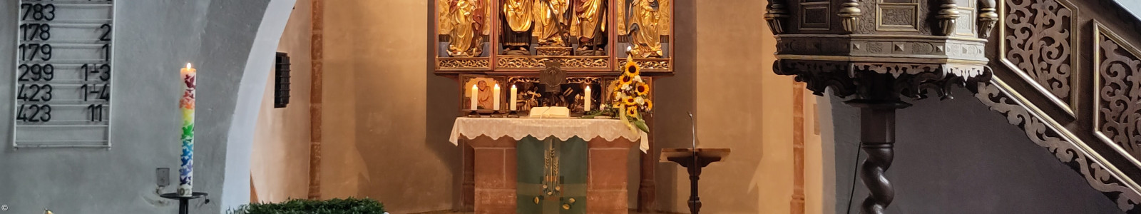 Sonntags ist in Seukendorf i.d.R. um 9.30 Uhr Gottesdienst in unserer Kirche St. Katharina. Am ersten Sonntag im Monat findet der Gottesdienst in Seckendorf um 10:30 Uhr statt. Wir feiern die Gottesdienste in der Form, wie sie in ganz Bayern sonntags üblich ist. Wir singen gemeinsam, wir beten, hören Lesungen und narülich eine Predigt. Im Zentrum aber steht die Besinnung auf Gott. Am Eingang unserer Kirche erhalten Sie - wenn Sie das wünschen - einen Gottesdienstablauf mit den gemeinsam gesprochenen Texten. Den Ablauf können Sie auch auf dem Handy mitverfolgen. Dazu einfach den QR-Code am Eingang einscannen.