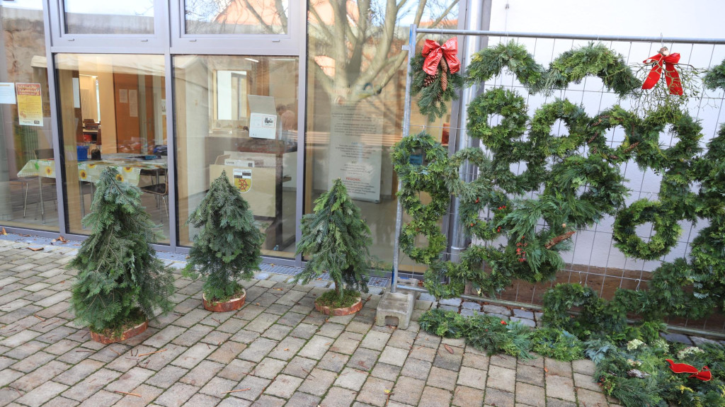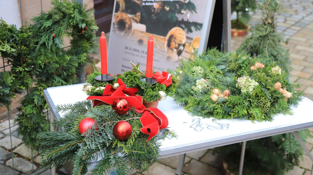 Und natürlich darf auch das Herzstück des Marktes nicht fehlen: Der Verkauf selbstgebundener Adventskränze.